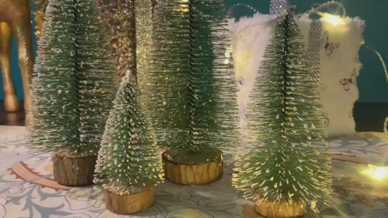 Crafted with soft bristle tips, snowy details, and a sturdy wooden base to mimic a real winter pine tree.